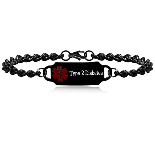 5x TYPE 2 DIABETIC diabetes Wristband MEDICAL AWARENESS ALERT BRACELET Glow in the Dark, Red, Black, Purple, Blue (Standard (202mm))
