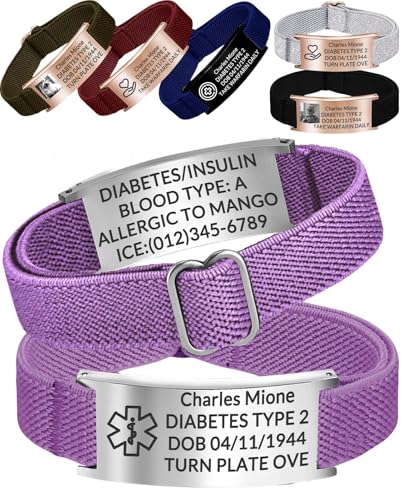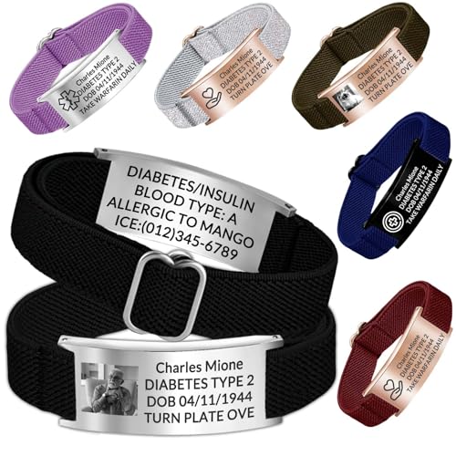 Personalised Medical Alert Bracelet for Men Women - Customised Elastic Strap Stainless Steel Bracelets Engraved Medic Info, Emergency Awareness Medic ID Bracelet for Autism Allergy Diabetic Epilepsy