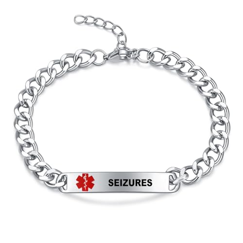 YOTHIWAD Medical Alert Bracelets for Men, Strong Durable Stainless Bracelet Medical Id Bracelets with Free Laser Engraving,Adjustable Wristband Dual-Side Engraving(SEIZURES)