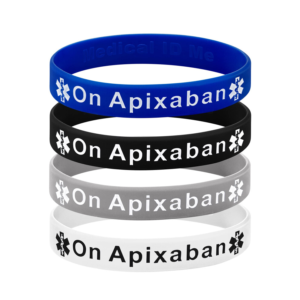 On Apixaban Medical Alert Wristband Bracelet Blood Clot ID Silicone UK (Pack of 4) (X Large 21cm)