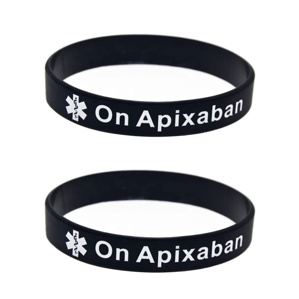 X2 On Apixaban Medical Alert Wristband Bracelet Blood Thinners Blood Clot Silicone Medical ID PACK OF 2 (Large 20cm, x2 Black)