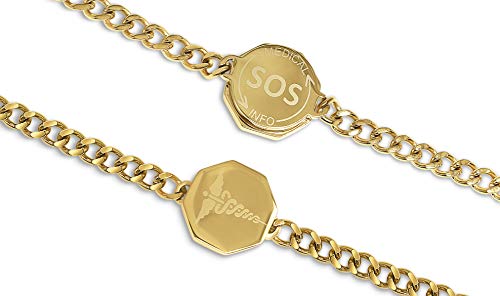 Medi Safe by Arabesques Jewels SOS Medical Alert Talisman Bracelet – 18ct Gold-Plated Stainless-Steel Emergency ID