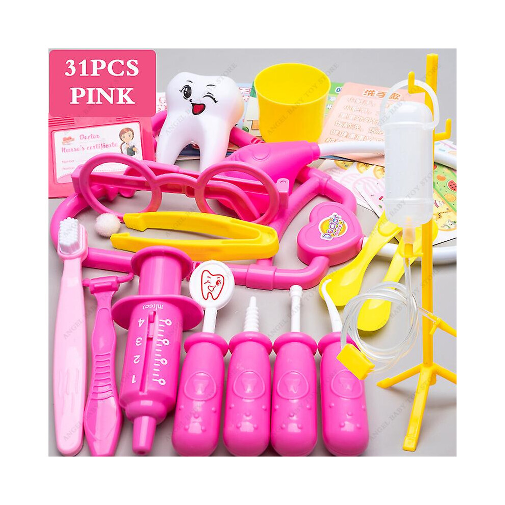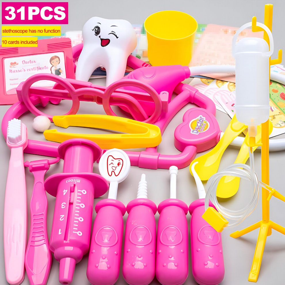 Children's Medical Toy Set Doctor's Play Equipment Toy Doctor Stethoscope Set Children's Doctor Play Set 31PCS Pink