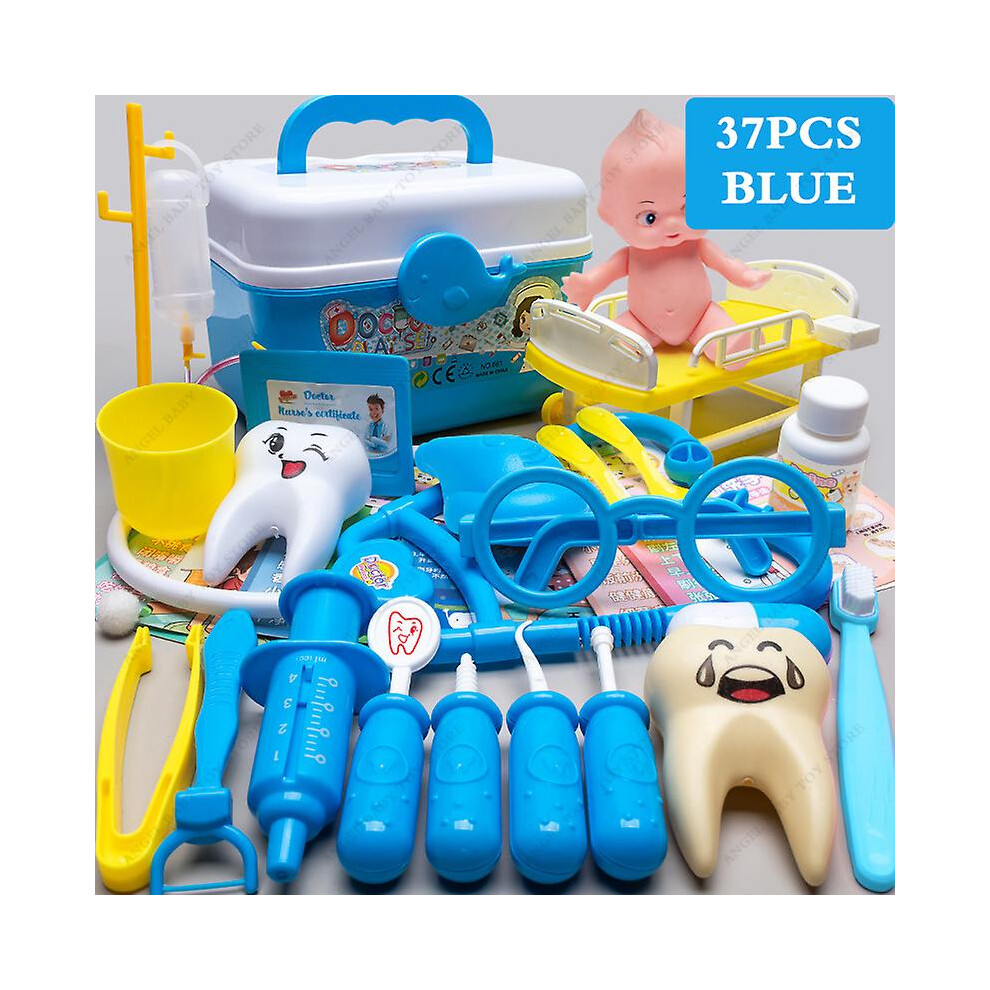 Children's Medical Toy Set Doctor's Play Equipment Toy Doctor Stethoscope Set Children's Doctor Play Set 37PCS Blue