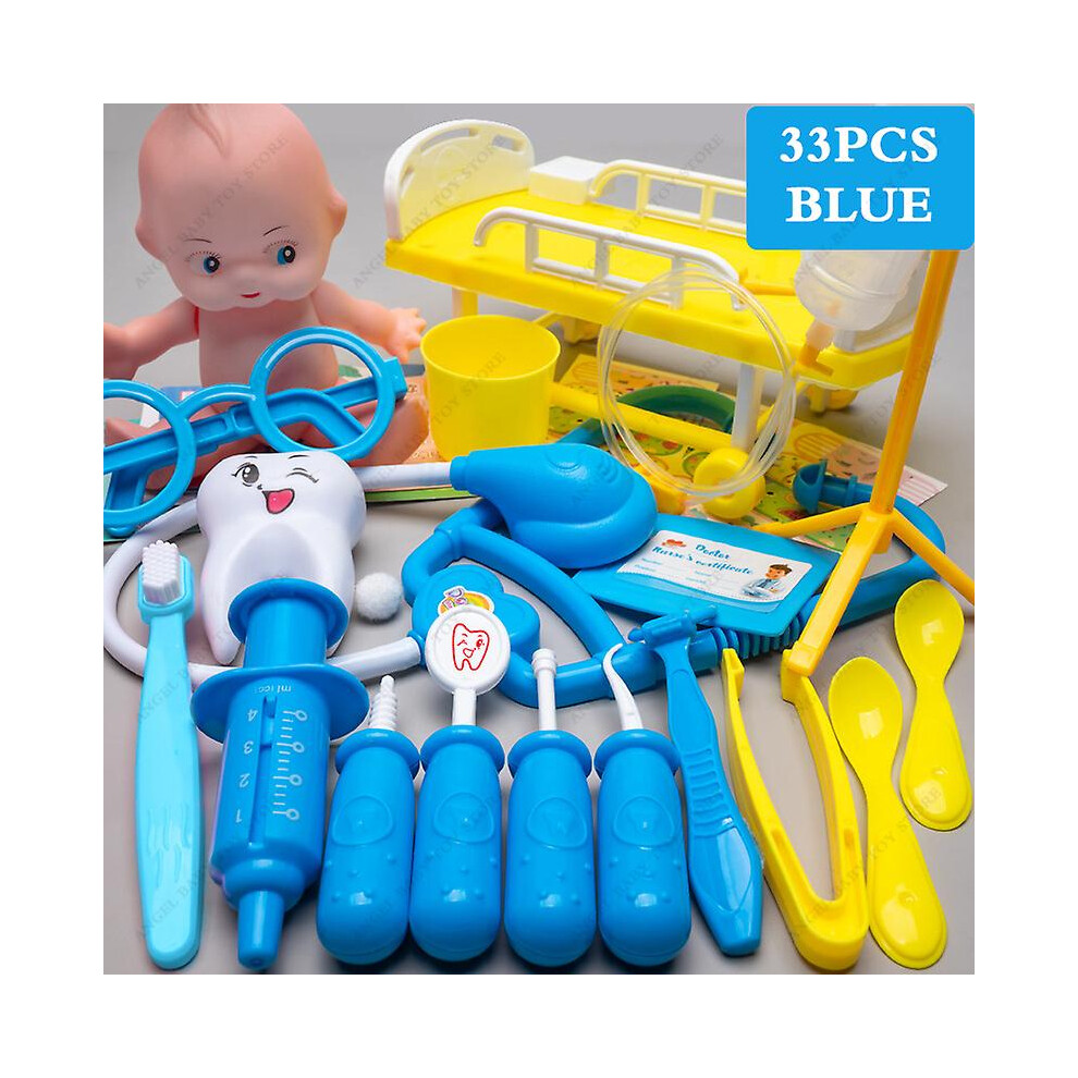 Children's Medical Toy Set Doctor's Play Equipment Toy Doctor Stethoscope Set Children's Doctor Play Set 33 PCS Blue