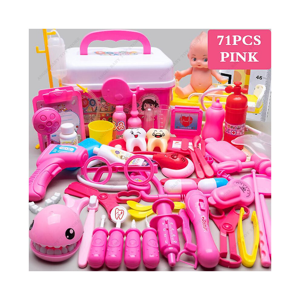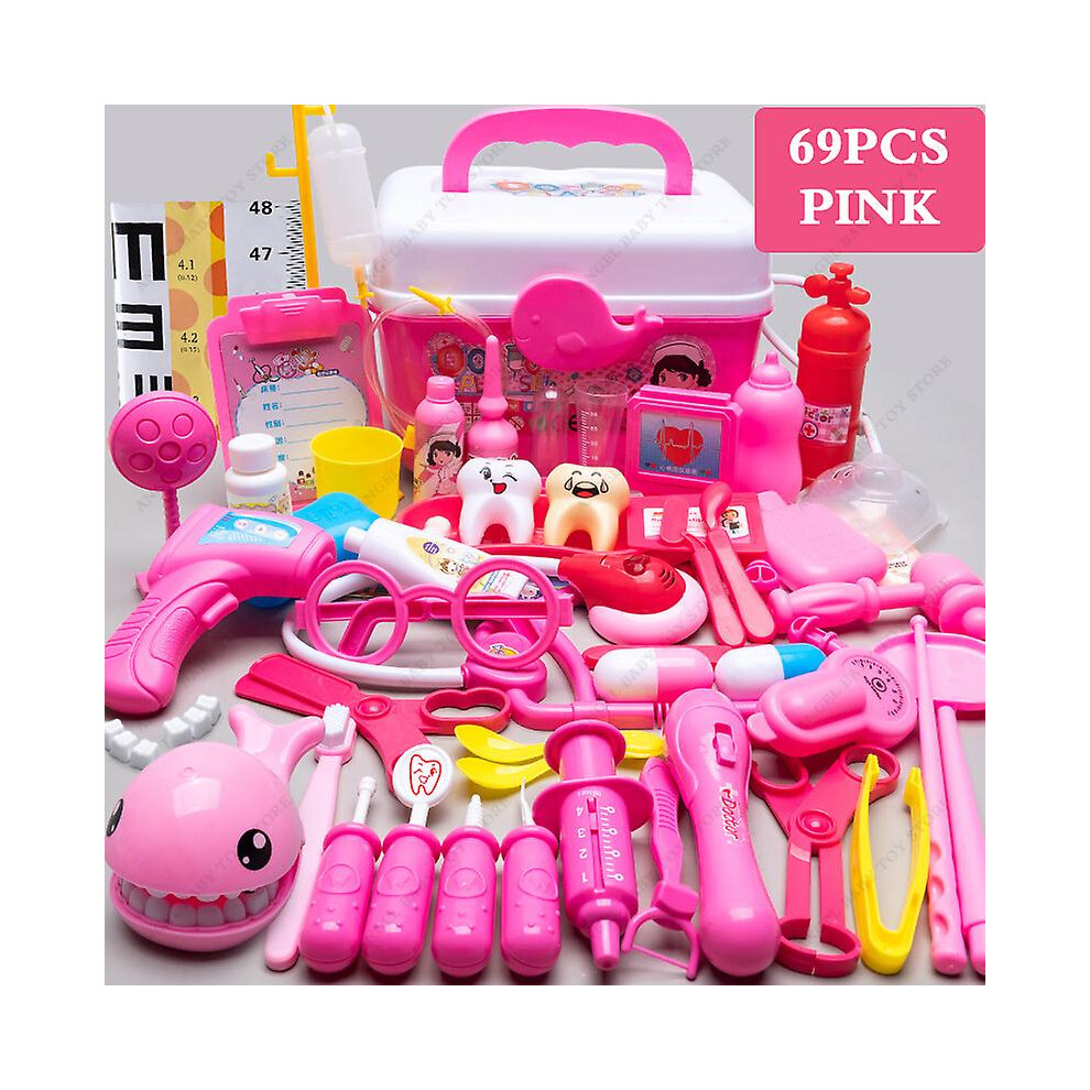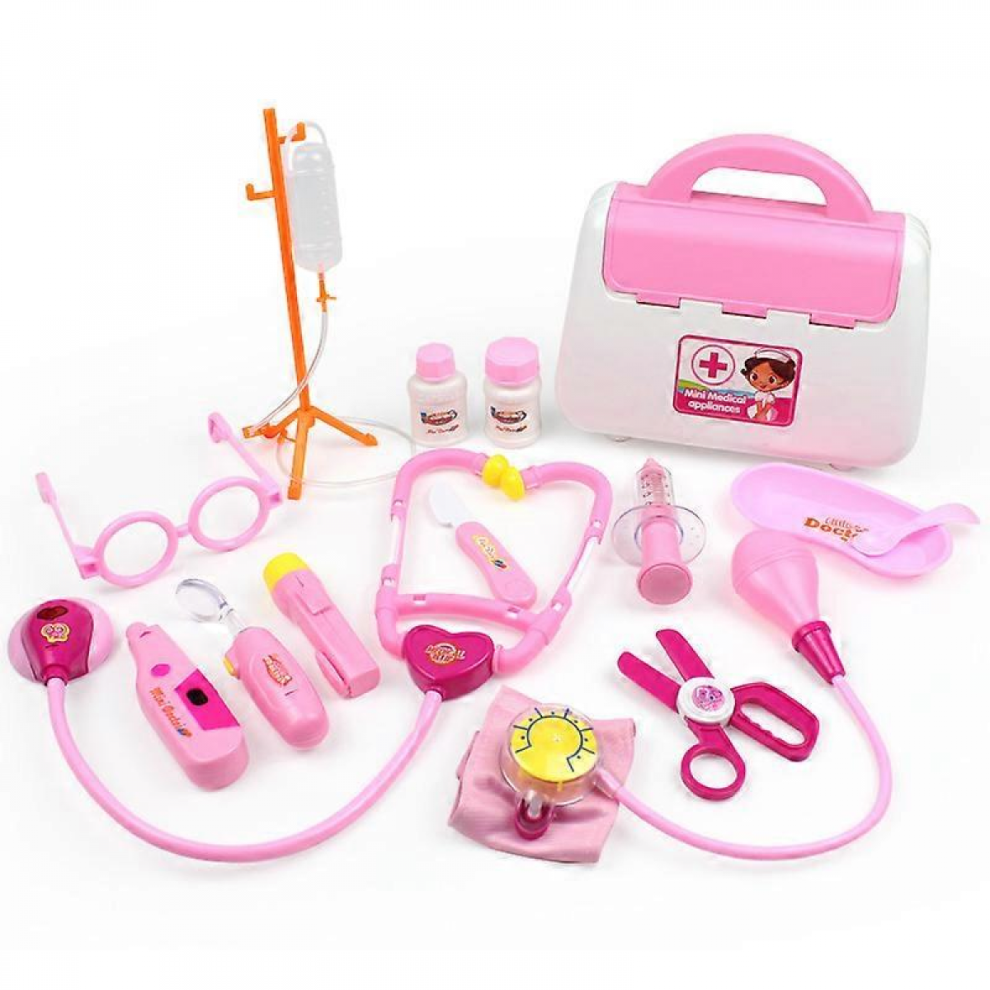 Children Medical Pretend Doctor Kit Play Toy Set&case Doctor Nurse Play Games Playset Toys Accessory For Kids GiftsPink No Led