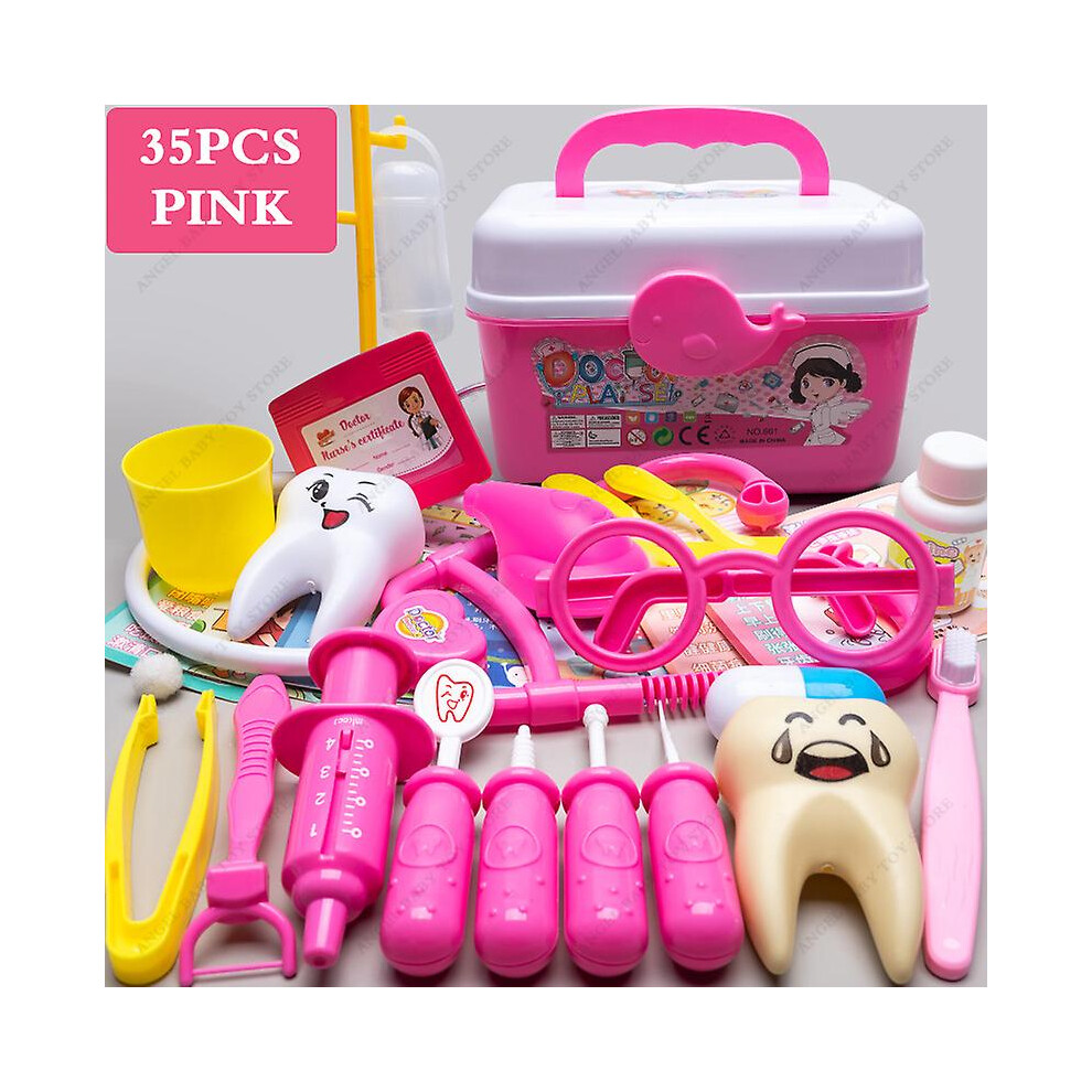 Children's Medical Toy Set Doctor's Play Equipment Toy Doctor Stethoscope Set Children's Doctor Play Set 35PCS Pink