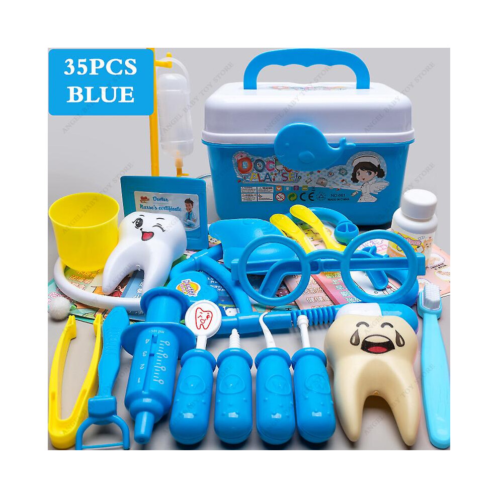 Children's Medical Toy Set Doctor's Play Equipment Toy Doctor Stethoscope Set Children's Doctor Play Set 35PCS Blue