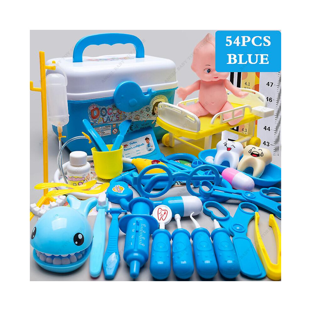 Children's Medical Toy Set Doctor's Play Equipment Toy Doctor Stethoscope Set Children's Doctor Play Set 54PCS Blue