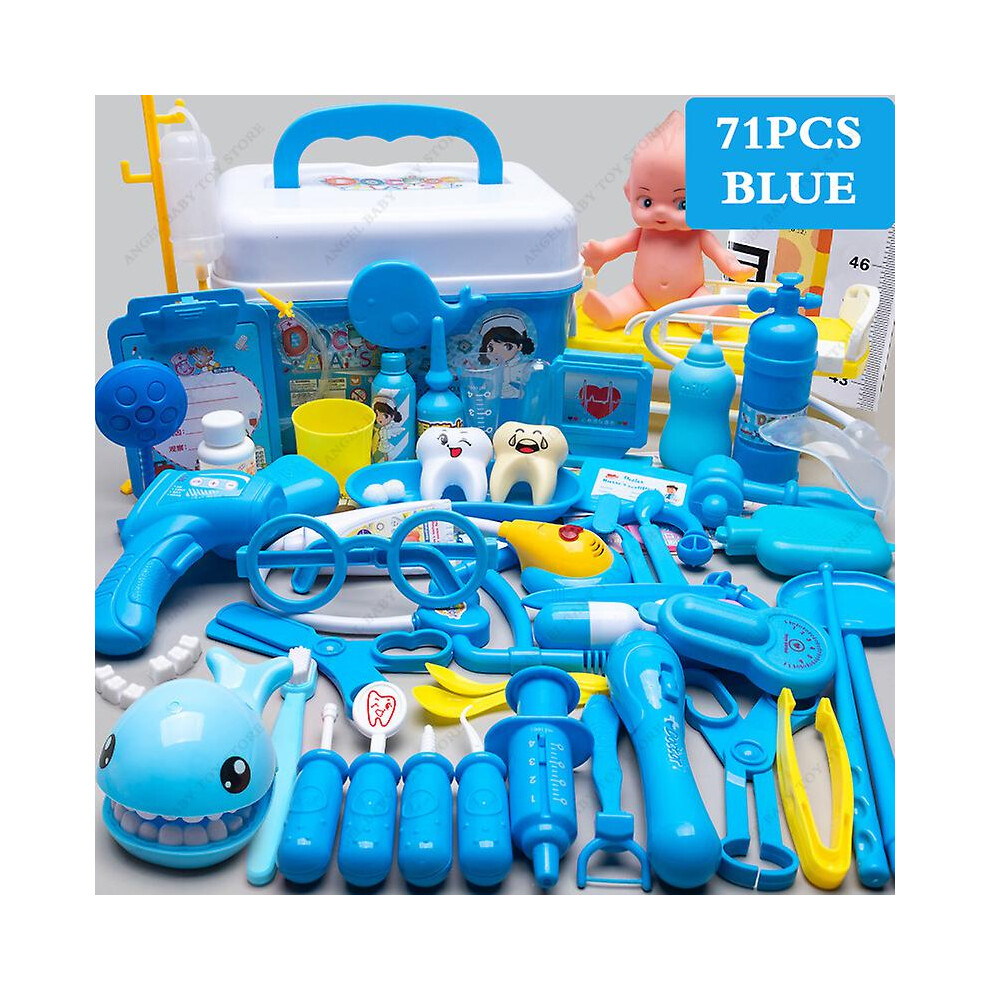 Children's Medical Toy Set Doctor's Play Equipment Toy Doctor Stethoscope Set Children's Doctor Play Set 71PCS Blue
