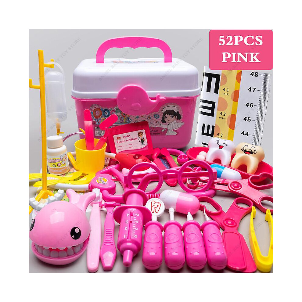Children's Medical Toy Set Doctor's Play Equipment Toy Doctor Stethoscope Set Children's Doctor Play Set 52PCS Pink