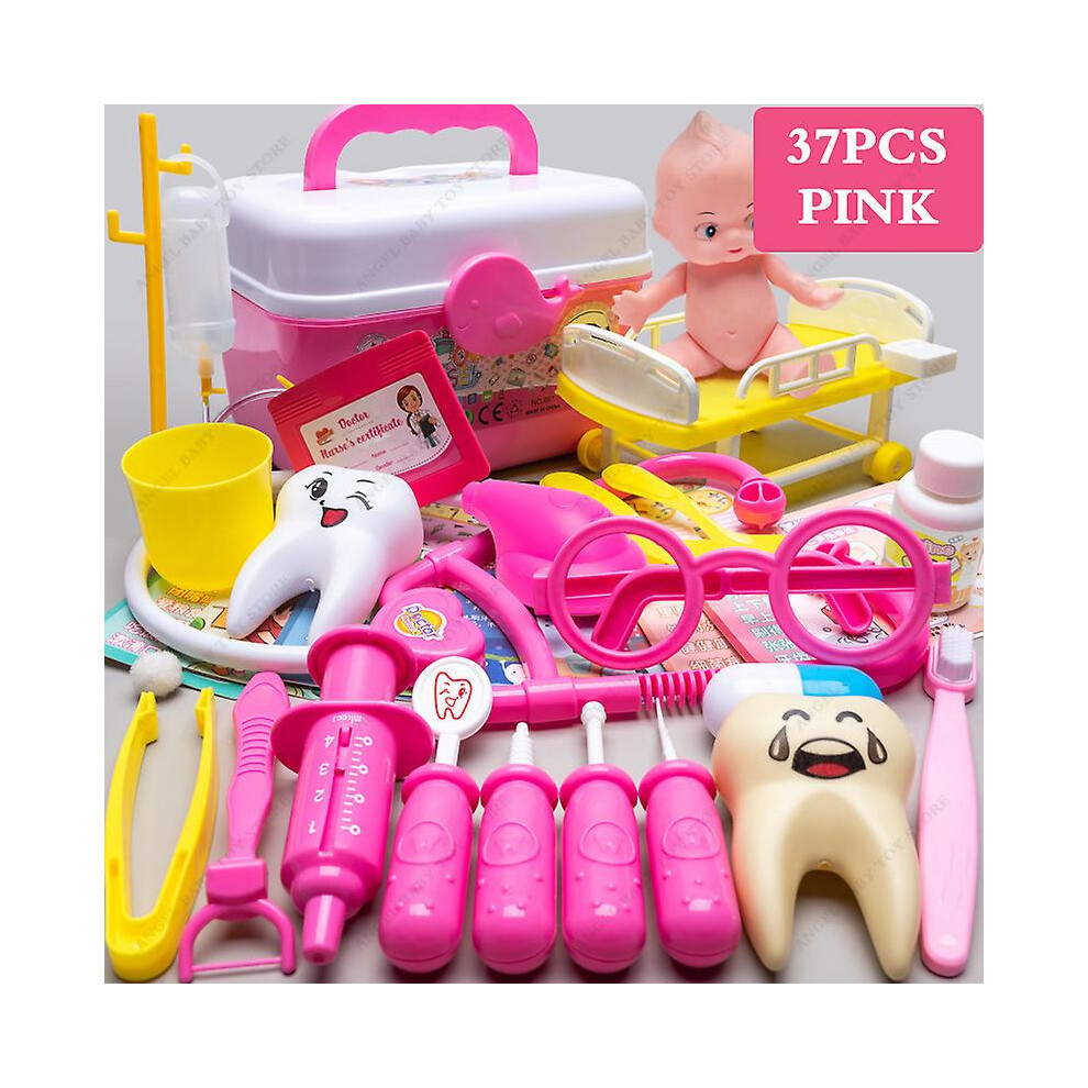 Children's Medical Toy Set Doctor's Play Equipment Toy Doctor Stethoscope Set Children's Doctor Play Set 37PCS Pink