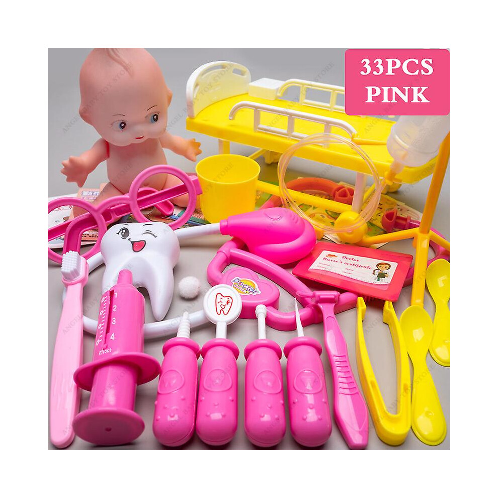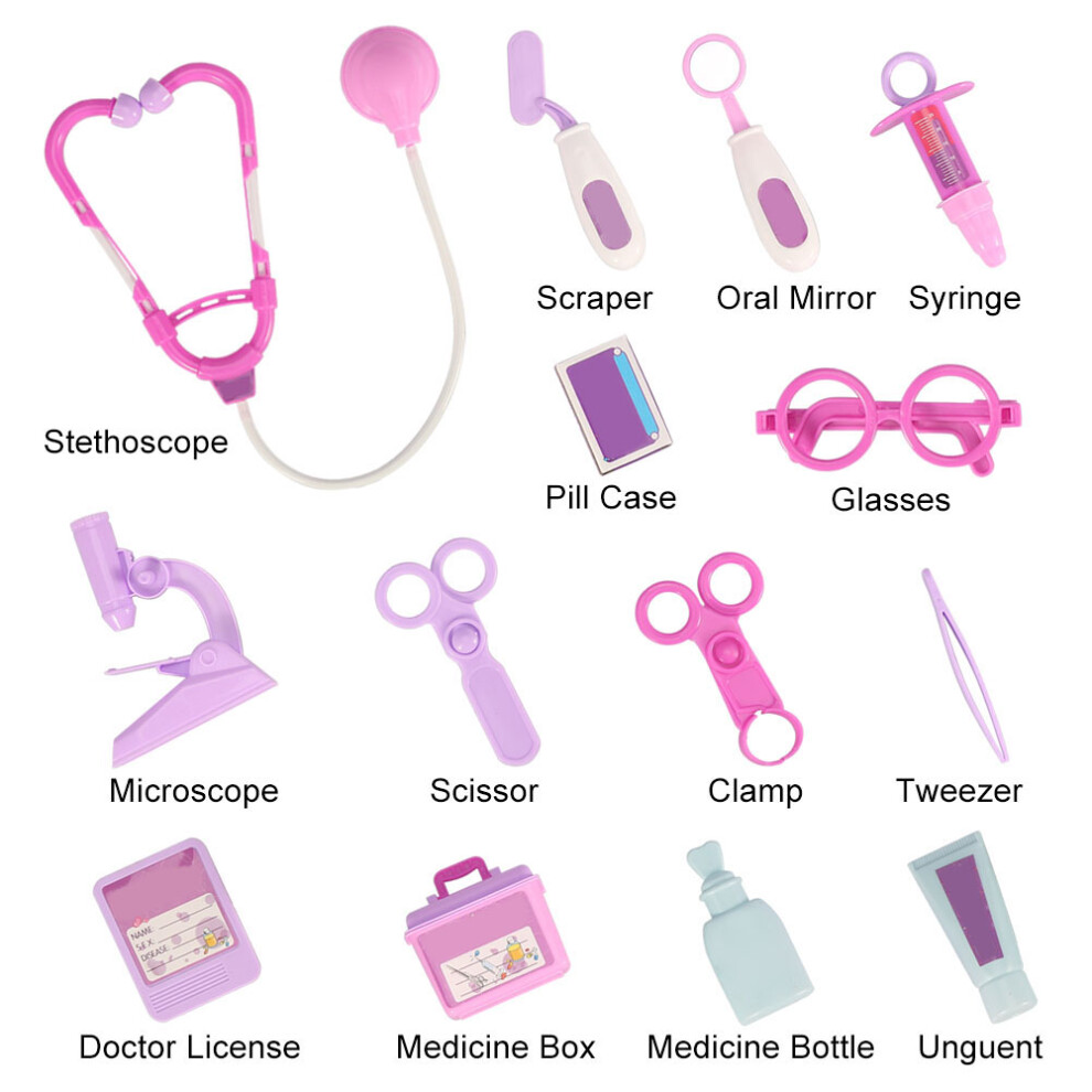 Children's Medical Toy Set Doctor's Play Equipment Toy Doctor Stethoscope Set Children's Doctor Play Set 33 PCS Pink