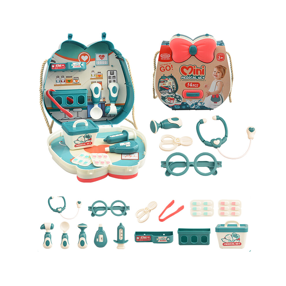 (C) 623-2001 14Pcs Simulation Doctor Medical Toy Set Portable Pretend Play Toy with Storage Case for Kids