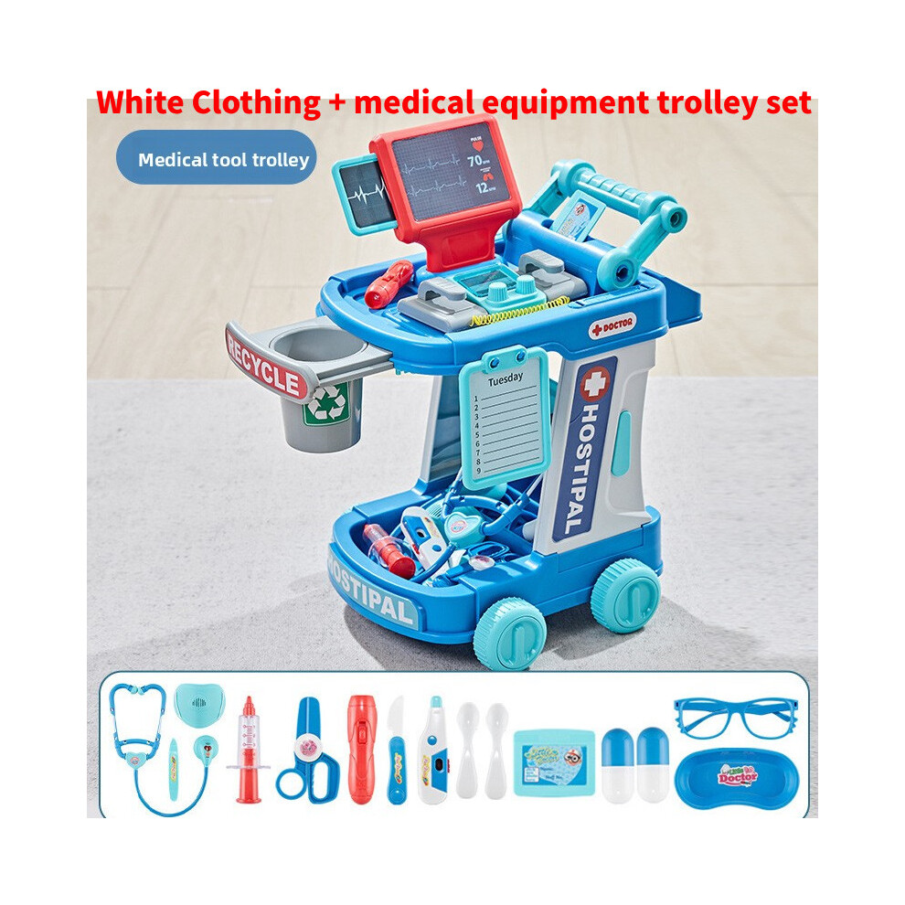 (Blue) Pretend Educational Medical Station Set Doctor Children Role Trolley Play Sets