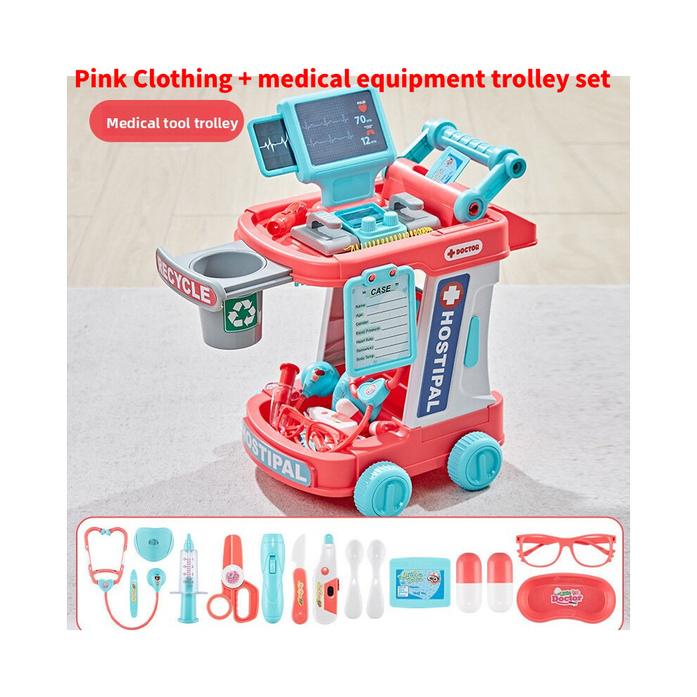 (Pink) Educational Pretend Medical Station Set Doctor Children Role Trolley Play Sets