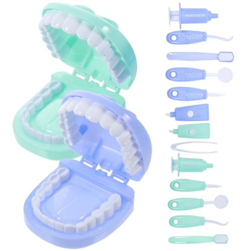 Alasum 2 Sets Dentist Pretend Play Set Medical Role Play for Boys, Simulation Dentist Kit Educational Doctor Medical Kit in Dark Blue and Green