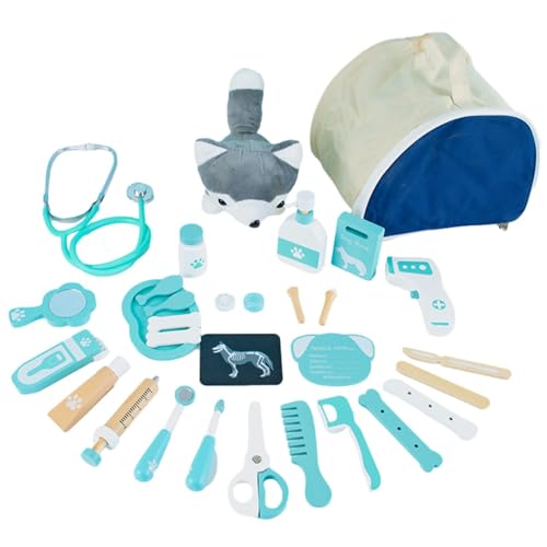 Kids Doctor Playset Imagination Playset, Veterinary Toy Pretend Kits for Doctors | Solid Wood Medical Kit 25 Pieces,Kid-Friendly Medical Kit with Portable Design, Gift for C