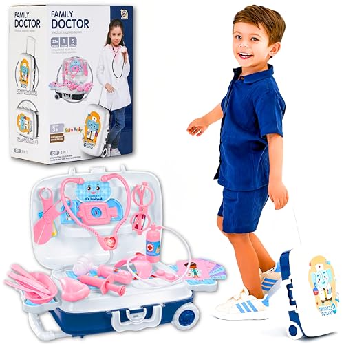 SGM 008-925A, Pretend Play Doctor Play Sets for Boys/Girls/Kids Doctor Kit Toys with Suitcase, Portable Medical Center Hospital Convertible Suitcase Gift for Boys and Girls Ages 3 and Up