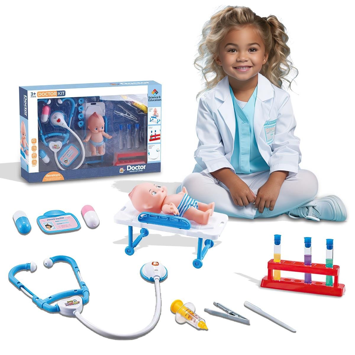 Kids Doctor Kit Toy Set with Baby Doll Educational Role Play Medical Playset for Children Aged 3+