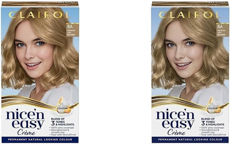 Clairol Nice'n Easy Crème Permanent Hair Dye, 8A Medium Ash Blonde (Pack of 2)