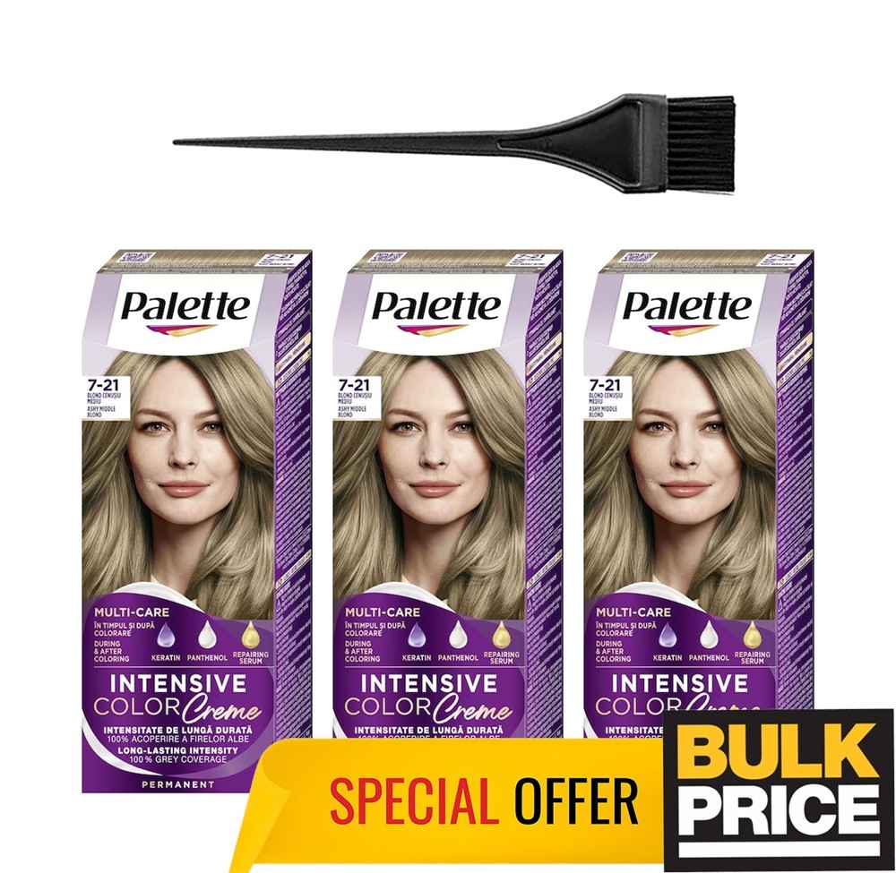 Palette Schwarzkopf Intensive Color Creme 7-21 Ash Medium Blonde Bulk 3-Pack
