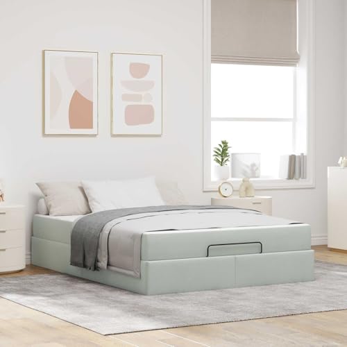 mzdioop Bed Frame with Mattress, Light Grey Velvet, 140 x 200 cm, High-Density Foam Mattress, Medium Firm, Storage Bed with Drawers, Modern Bedroom Set, Durable Plywood Frame