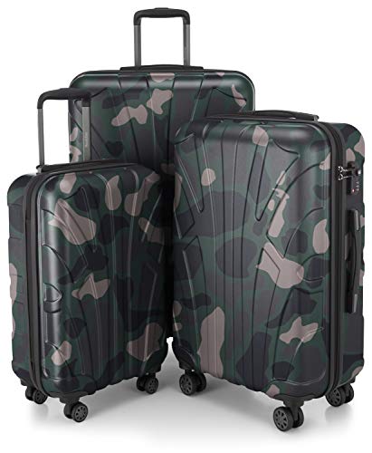 Suitline - Expandable Luggage Set, Carry On Trolley 55cm + Medium Sized Suitcase 66cm + LargeTrolley 76cm, ABS, TSA, Camouflage