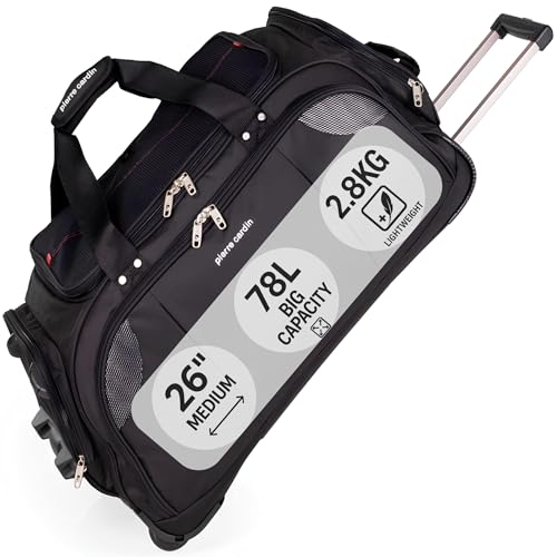 Pierre Cardin Lightweight Roller Holdall with Wheels - Durable Medium Sized Travel Duffel Bag on Wheels, Large Capacity 78L Wheeled Duffle Suitcase CL769 (Medium 26")