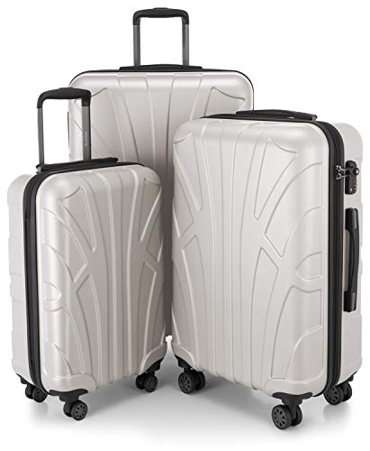 Suitline - Expandable Luggage Set, Carry On Trolley 55cm + Medium Sized Suitcase 66cm + LargeTrolley 76cm, ABS, TSA, White