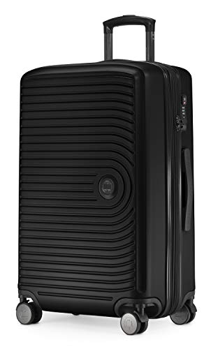 WENGER Ibex Medium Hard-Shell Suitcase with 4 Wheels, Trolley, Medium-Sized, 64 (78) l, Security Lock, Women Men, Travel Vacation, Black, 612040