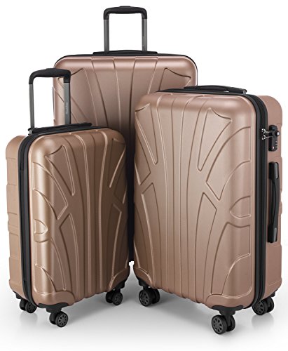Suitline - Expandable Luggage Set, Carry On Trolley 55cm + Medium Sized Suitcase 66cm + LargeTrolley 76cm, ABS, TSA, Gold