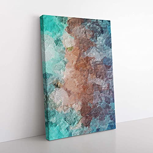 Big Box Art Meeting in The Middle in Abstract Canvas Wall Art Print Ready to Hang Picture, 76 x 50 cm (30 x 20 Inch), Blue, Teal, Blue, Grey, Teal