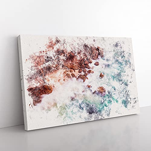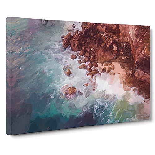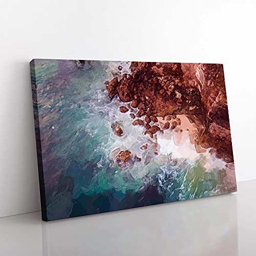 Rock Meeting the Ocean Watercolour Canvas Print for Living Room Bedroom Home Office Décor, Wall Art Picture Ready to Hang, 30 x 20 Inch (76 x 50 cm)