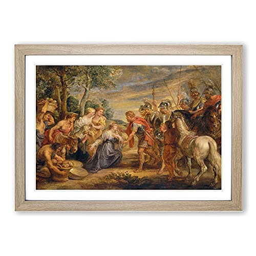 Big Box Art The Meeting of David and Abigail by Peter Paul Rubens Framed Wall Art Picture Print Ready to Hang, Oak A2 (62 x 45 cm)