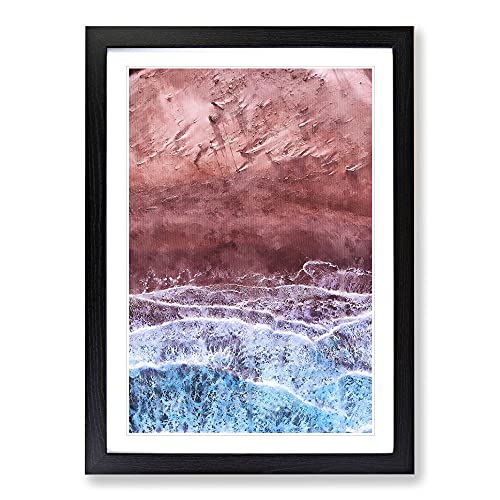 Big Box Art Waves Meeting The Beach Painting Framed Wall Art Picture Print Ready to Hang, Black A2 (62 x 45 cm)