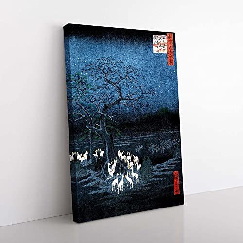Big Box Art Foxes Meeting at The Changing Tree by Utagawa Hiroshige Painting Canvas Wall Art Print Ready to Hang Picture, 76 x 50 cm (30 x 20 Inch), Green, Blue, Turquoise, Grey, Red