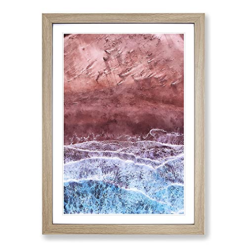 Big Box Art Waves Meeting The Beach Painting Framed Wall Art Picture Print Ready to Hang, Oak A2 (62 x 45 cm)