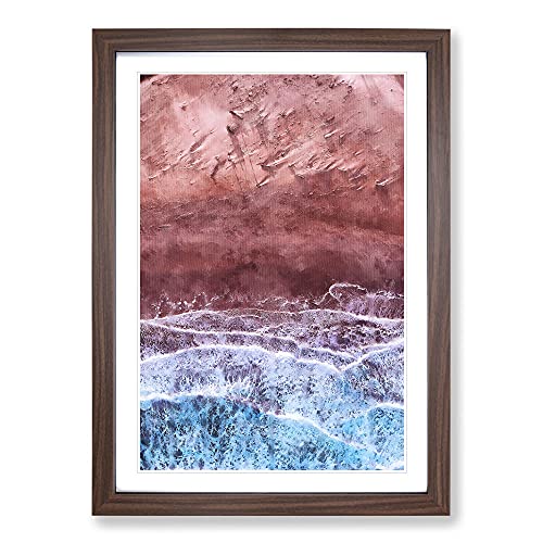 Big Box Art Waves Meeting The Beach Painting Framed Wall Art Picture Print Ready to Hang, Walnut A2 (62 x 45 cm)