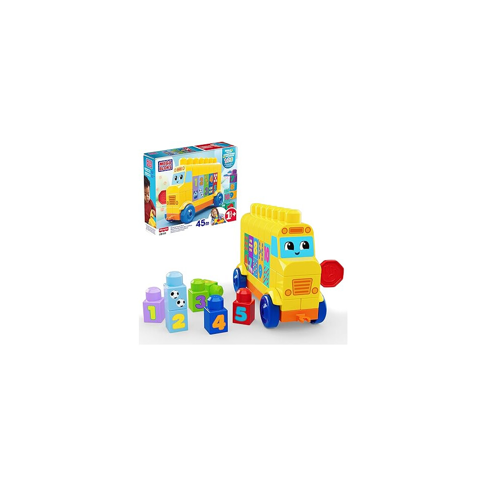 MEGA BLOKS First Builders Toddler Block Toys Set, Build & Count Bus 45 Pieces
