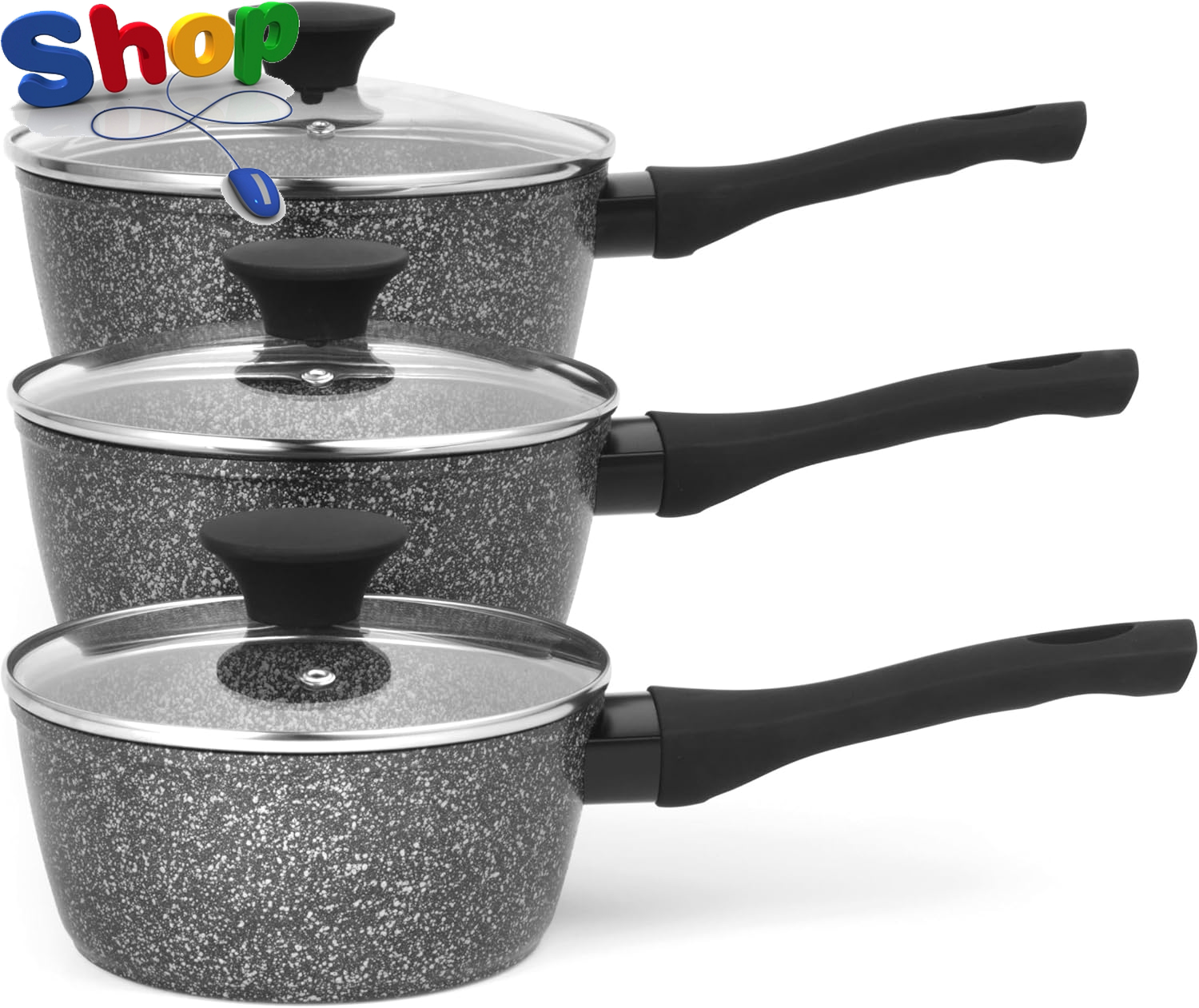 Megastone 3-Piece Pan Set - Non-Stick Cooking Pots, Induction Hob Suitable, 16/1