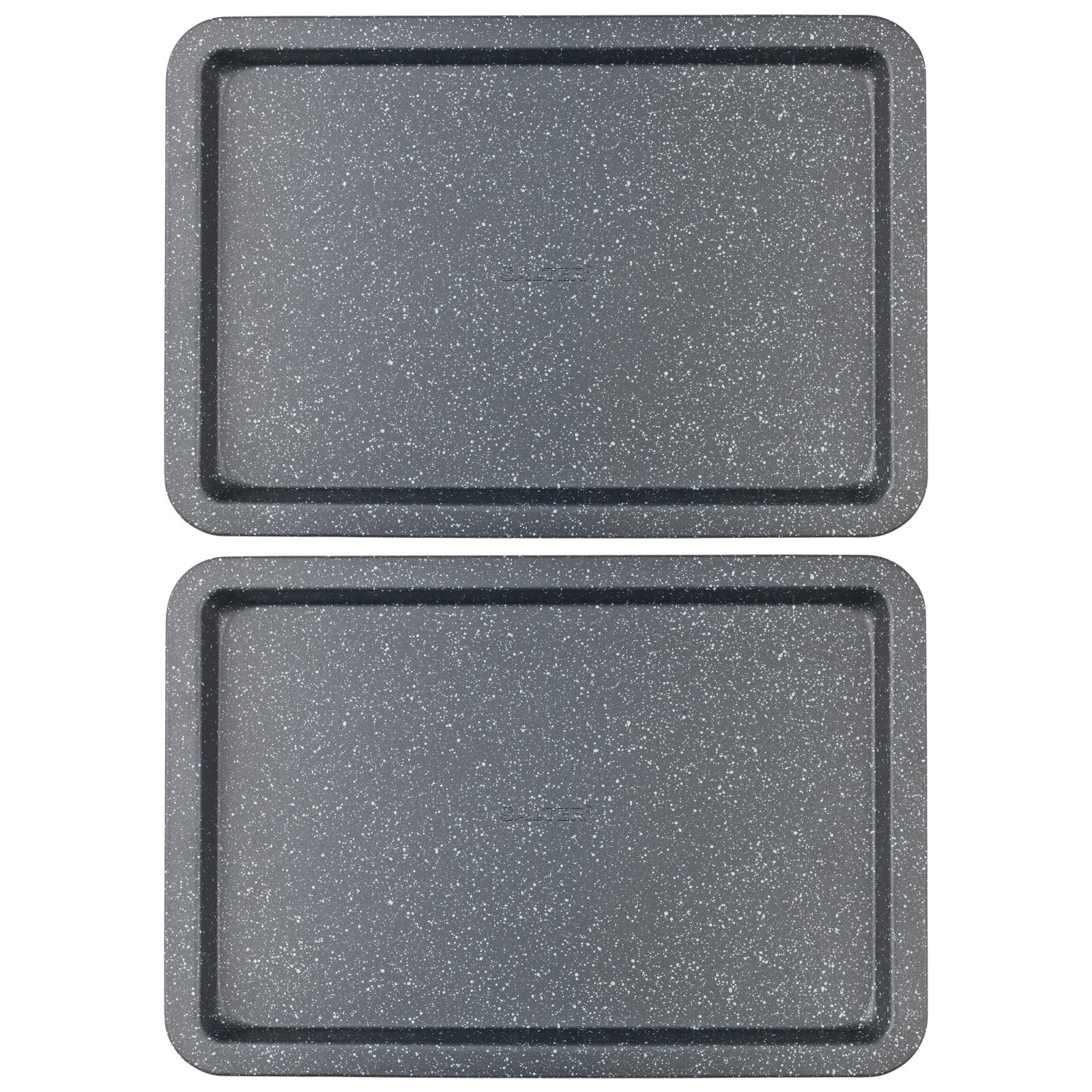 Salter COMBO-8261 Baking Tray Set of 2, Non-Stick Carbon Steel Oven Sheet, Easy Clean, Strong & Durable, Long Lasting, PFOA-Free, Megastone Collection, Black/Silver, 37 cm