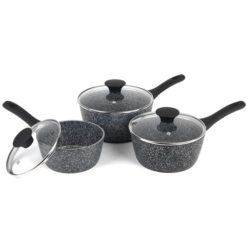 Salter BW05751S Megastone Saucepan Set - 3 Forged Aluminum Pans, 16cm,18cm, 20cm & BW05745 Megastone Collection Non-Stick Forged Aluminium Frying Pan, 20 cm