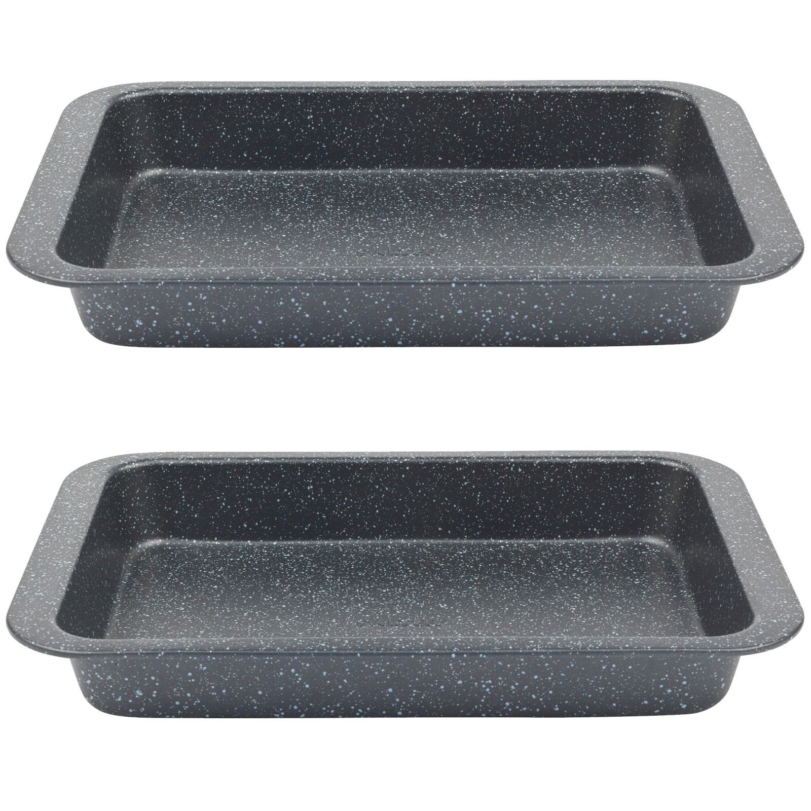 Salter COMBO-9289 Megastone Square Brownie Tin Set – 2 Pack, Non-Stick Coating Oven Tray for Roasting & Baking, Durable Carbon Steel Pan for Cake, Pie, Lasagne, Tray Bakes, PFOA-Free, 23 cm