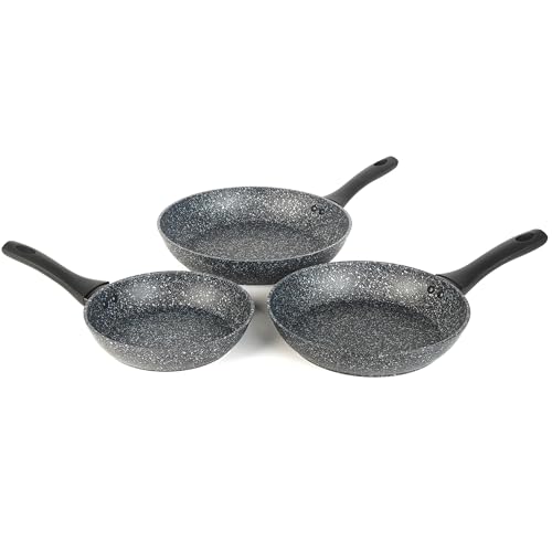 Salter BW06235S Megastone Frying Pan Set – 3 Piece, 20/24/28cm, 10 x Tougher Non-Stick, Aluminium Cookware Set, Induction Pans, Dishwasher & Metal Utensil Safe, Stay Cool Handles, Egg/Pancake Pans