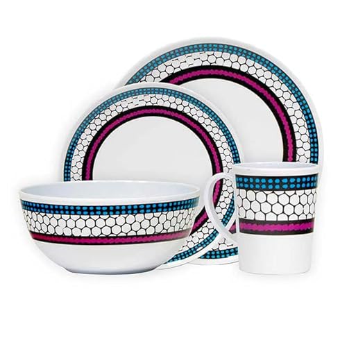 Leisurewize LWACC380 Melamine 16 Pcs Dinner Set - Plates, Bowls, Mugs, Side Plates - Honeycomb Art, Heat Resistant, Dishwasher Safe Portable Dinnerware
