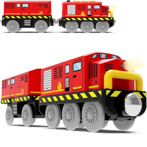 Battery Operated Locomotive Train Toy for Wooden Tracks, Motorized Trains for Toddlers, Train Accessories Compatible with Thomas, Brio, Chuggington, Melissa and Doug