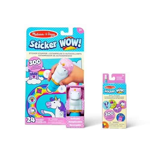 Melissa & Doug Sticker WOW Unicorn Bundle: Sticker Stamper, 24-Page Activity Pad, 600 Total Stickers, Arts and Crafts Fidget Toy Collectible Character