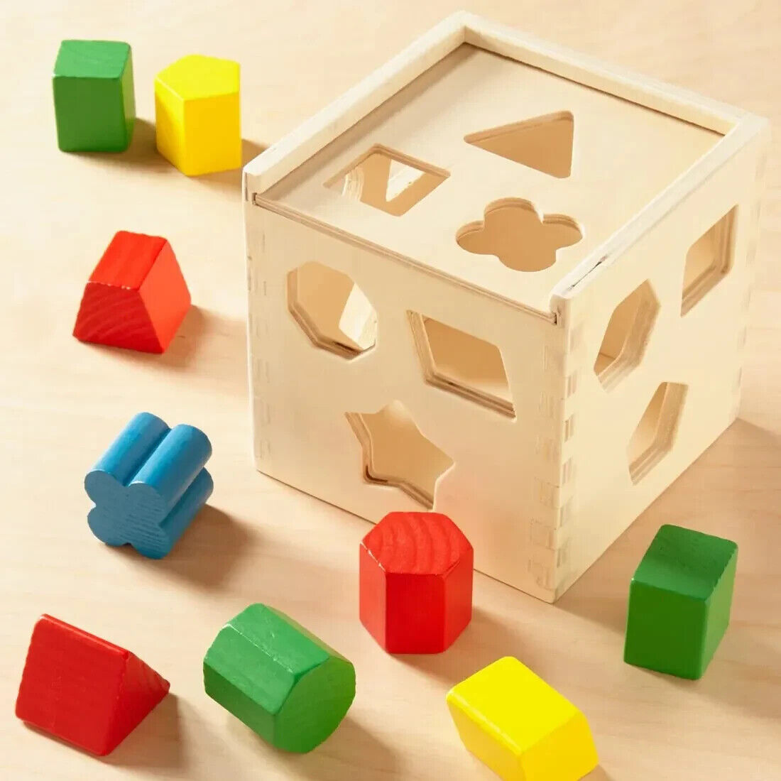 Shape Sorting Cube Classic Wooden Sorter kids fun learn Playset Melissa & Doug
