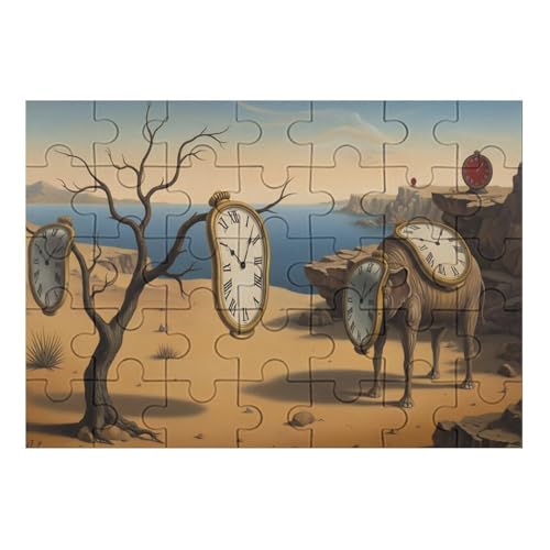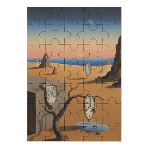 Surreal Melting Clock Wooden Jigsaw Puzzles for Adults 35/70/120/200/300/5001000 Pieces - Art for Wall Decor - Durable Poplar Wood, Zero Dust, UV Vibrant Print - Family Group Activity & Unique Gift